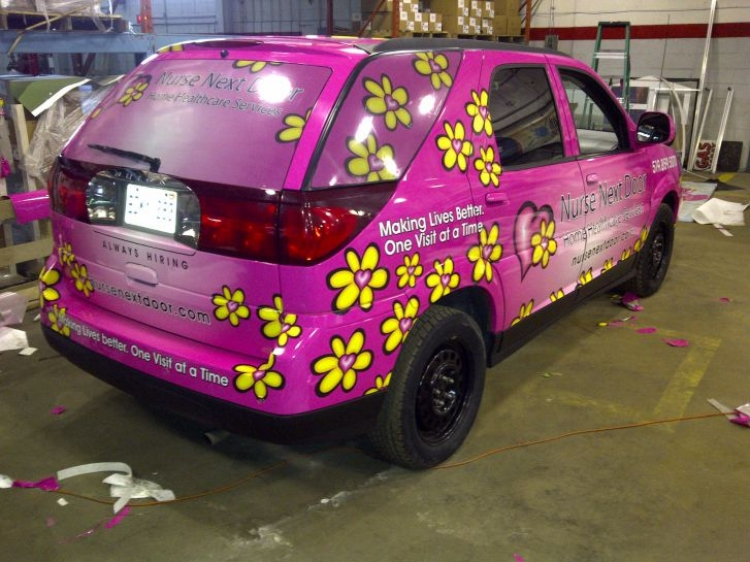 A vehicle wrap is a high quality vinyl that is able to conform to your vehicle's surface. It can be installed to the entire vehicle or to any partial area that you desire. The wrap is sturdy, waterproof and will not smudge or distort during the life of the wrap.